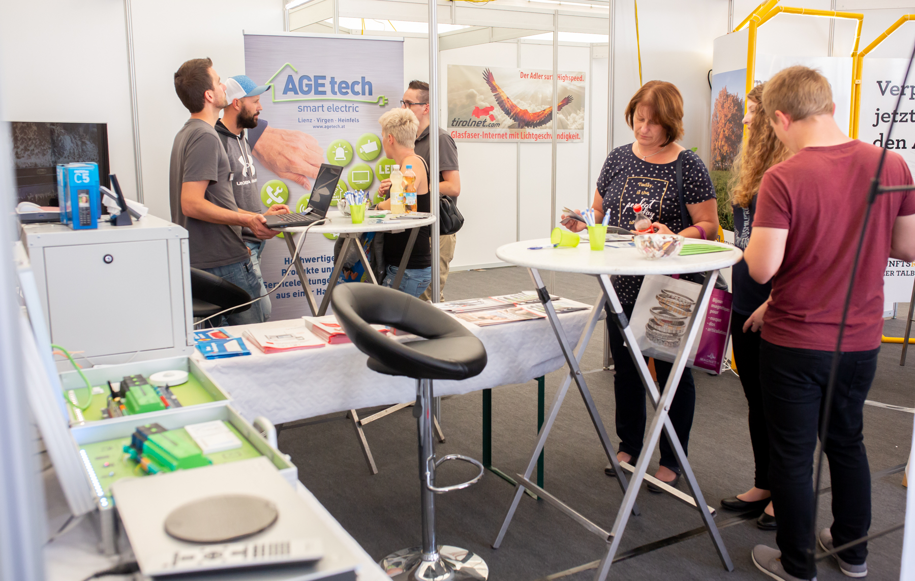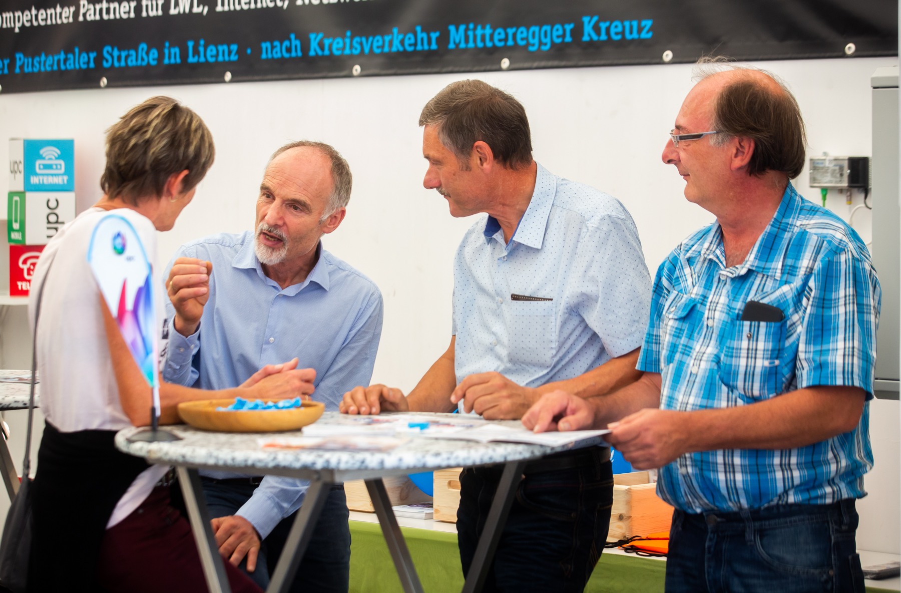 Die 33. Osttirol Messe, welche von 21. Bis 23. September 2018 in Lienz stattfand, stand ganz unter dem Zeichen der „Digitalisierung im Bezirk Lienz“. Auch der Planungsverband 36, Lienz und Umgebung war mit der verbands- und gemeindeeigenen Infrastruktur „RegioNet“, gemeinsam mit den Providern und ihren Vor-Ort-Partnern vertreten. Nach der feierlichen der Eröffnungsrede und lobenden Worte für den Bezirk und der gemeinsamen Schritte, besuchte uns Frau Vize-Präsidentin des Tiroler Landtages Mag.a Stephanie Jicha sowie der Geschäftsführer der Standortagentur Tirol Herr Dr. Marcus Hofer, gemeinsam mit den BürgermeisterInnen des Planungsverbandes 36, Lienz und Umgebung im „Smart Home and More“ Messezelt. Viele interessierte Personen aus dem Bezirk nutzten diese Chance, um mehr über das RegioNet® sowie des Ausbaustandes zu erfahren oder über Anschlussmöglichkeiten bei unseren drei Providern.