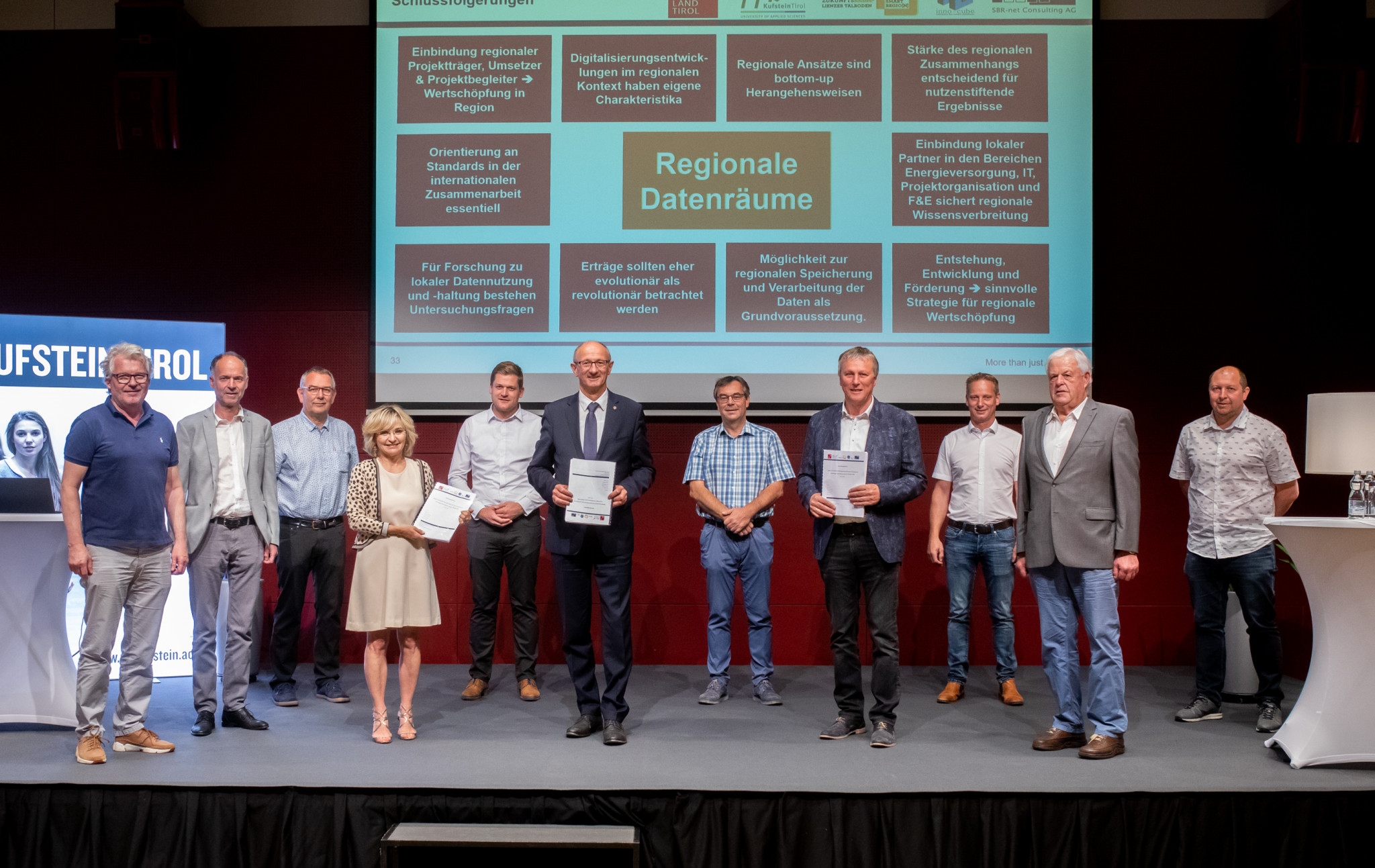 Am Foto von Links: Bgm. Ing. Bernhard Zanon, Bgm. Ing. Reinhold Kollnig, Bgm. Ludwig Pedarnig, LA Dipl-Ing. Bgm. Elisabeth Blanik, Bgm. Markus Stotter BA, Landesrat Anton Mattle, Bgm. Ing. Andras Pfurner, Obmann Bgm. Josef Mair, Bgm. Georg Rainer, Bgm. Franz Idl, Silvio Trojer RegioNet®